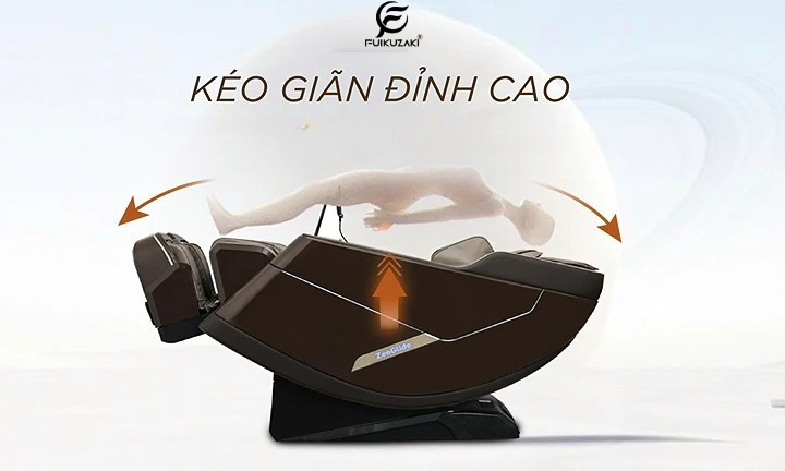 Ghế được trang bị khung ray thẳng, cho phép tùy chỉnh độ rộng hẹp của con lăn, ôm sát từng đường cong cơ thể. Nhờ vậy, ghế có thể kéo giãn sâu tới 180 độ và dễ dàng gập vuông góc giữa lưng và chân, mang lại trải nghiệm massage toàn diện và thoải mái.