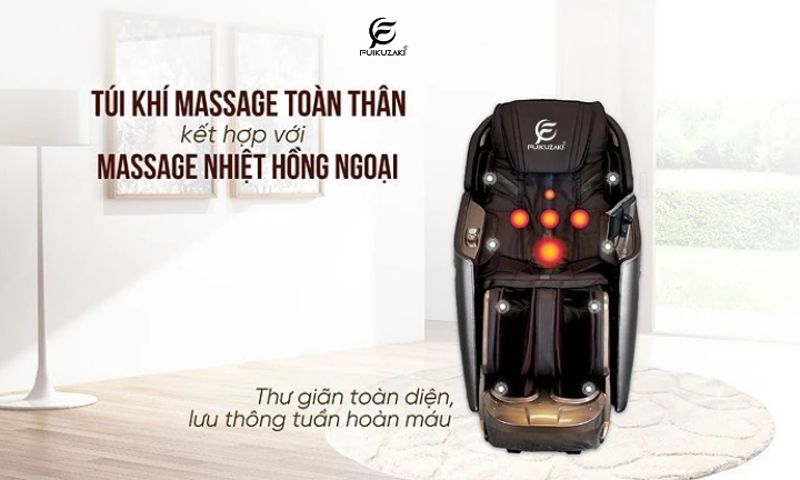 Ghế massage FUIKUZAKI FK-1178 trang bị hệ thống túi khí massage toàn thân kết hợp với tính năng massage nhiệt hồ