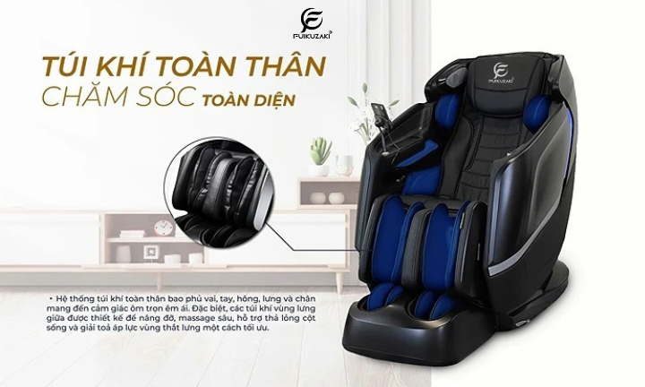 Đặc biệt, FK-1288 được tích hợp thêm túi khí dành riêng cho vùng lưng giữa khu vực thường chịu nhiều áp lực nhưng ít khi được chăm sóc đúng mức. Thiết kế này giúp nâng đỡ cột sống, massage sâu và giải phóng áp lực vùng thắt lưng, hỗ trợ thư giãn toàn diện, nhất là sau những ngày dài ngồi nhiều hoặc vận động quá sức.